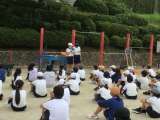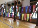 7月に作った染め物を講堂に飾り、ドローンで撮影してもらいました。このDVDは記念...