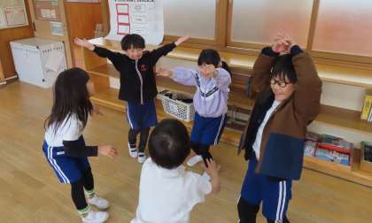 国語科「たけのこ ぐん」の学習をしました。たけのこの成長の様子を思い浮かべて、動きを考えながら音読をしました。何度か練習しているうちに、自然と2年生全員が輪になって誰が一番大きなたけのこになるかを競いながら大きな声で音読することができました。学習のまとめでは「みんなで読むと楽しい」「ほかの詩もいろいろな動きをつけてみたい」などの意見が出ました。