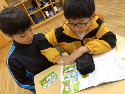 3年生:算数科「九九の表とかけ算」 公開日 2025/04/21 更新日 2025/04/21 お知らせ 算数科「九九の表とかけ算」の学習をしました。まず始めに、2年生で習った九九を全員で声を揃えて唱えました。その後取り組んだ数あてゲームでは、ペアの子と問題を出し合い、かけ算のきまりを活用しながら、隠れた数を答えることができました。きまりを活用するよさに気づき、これからの学習に生かしたいと振り返りを発表していました。