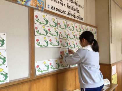 高学年の仲間入りをした4年生が、いよいよ委員会活動に参加するようになりました。初めての活動に少し緊張しながらも、どの子も意欲的に取り組んでいます。図書委員会では本の貸し出し操作を覚えたり、環境委員会では「輝く道慈っ子」を掲示板に貼ったりと、学校をよりよくするために一生懸命頑張っています。