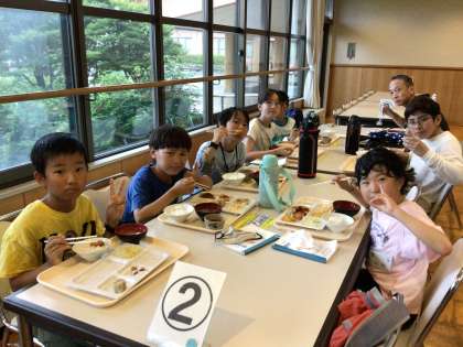 お昼ご飯を食べました 公開日 2025/06/26 更新日 2025/06/26 各学年から ウオークラリーの後、自然の家の食堂で、昼食です。ミネアサヒの特Aのお米だそうで、多くの子どもたちがおかわりをしていました。食べていたら、外はすごい土砂降りに!あと30分遅かったら、濡れネズミでした。子どもたち、もってます!