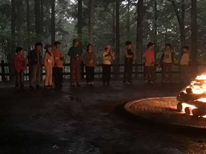 キャンプファイヤー その3 公開日 2025/06/26 更新日 2025/06/26 各学年から 次は本城小の、打ち囃子。笛の調べに合わせて、掛け声をかけました。最後が道慈小。出し物はゴリラゲーム。どんな質問にも「ゴリラ」と答えなくてはいけません。「あなたの名前は?」「ゴリラー」 中部小の子が「ゴリラゲームが楽しかった」と言ってくれました。みんなで盛り上げ、楽しいファイヤーになりました。 このあと、お風呂に入っておやすみなさい。