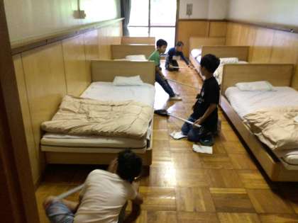 使った部屋等の掃除です。使う前より美しく。ここでも、声を掛け合って協力してやれました。ベットの下も点検箇所のひとつです。