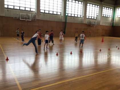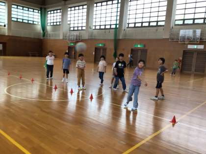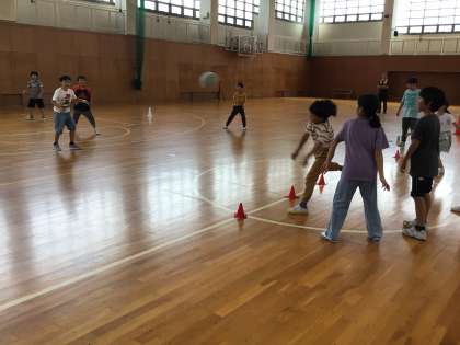 部屋の点検が合格できたら、2回目の交流レク。初めは王様ドッチボール。