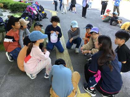 小原に帰ってきました。二日間で小原3小学校5年生はとても親しい仲になりました。非常に中身の濃い充実した二日間でした。帰着式では疲れ切った顔でしたが、それだけ頑張ったという証です。野外学習は、大成功でした。5年生の皆さん、お疲れ様でした。
