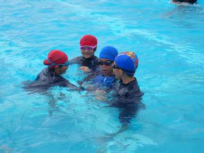 全校「プール納め」 公開日 2025/07/22 更新日 2025/07/22 お知らせ 16日(水)の1時間目に、プール納めをしました。運営委員会が企画した「漁師と魚ゲーム」を全校で行いました。漁師役は2人で手を繋ぎ、逃げる魚を捕獲します。魚役は漁師に捕まらないように歩いて逃げます。漁師が魚を捕獲した時の「捕ったどー!」というかけ声がプール全体に響き渡りました。天候が心配でしたが、無事にプールの授業を納めることができてよかったです。