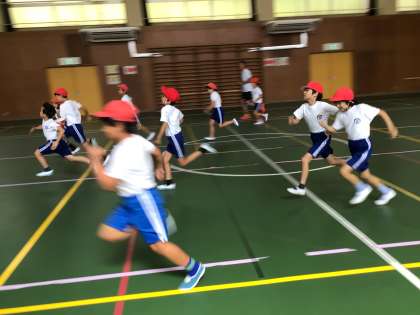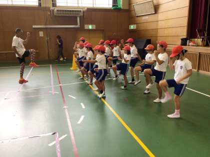 3・4年生「走り方教室」 公開日 2025/09/19 更新日 2025/09/19 お知らせ 「走り方教室」にバルセロナオリンピックなどで活躍された青戸慎司選手を講師として招き、速く走るポイントを教えていただきました。どの子も青戸先生の動きを少しでも真似しようと、真剣に話を聞き、全力で練習していました。走り方教室で自信をつけ、10月の運動会で今回の成果を発揮しようと、気合が入っていました。