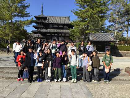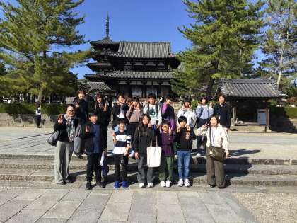 法隆寺 公開日 2025/11/08 更新日 2025/11/08 お知らせ 最後の訪問先、法隆寺に着きました。 日本最古の木造建築、たくさんの国宝がありました。 でも、子どもたちはちょっとお疲れ気味です。この後帰路に着きますが、バスの中はお休みでしょうか。