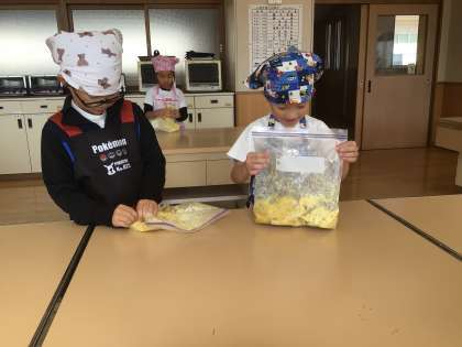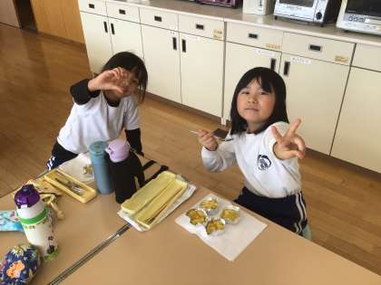5月に植えたサツマイモの苗が立派に育ち、収穫することができました。畑からサツマイモを見つけた時、2年生から割れんばかりの歓声が上がりました。収穫したサツマイモは、話し合った結果、スイートポテトを作ることになり、全員で協力して「ほっぺが落ちるくらい美味しい」スイートポテトを作ることができました。