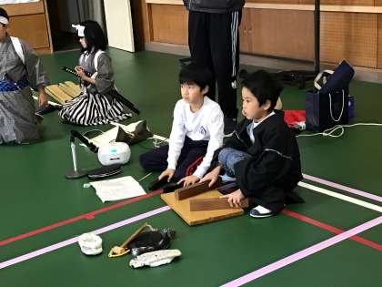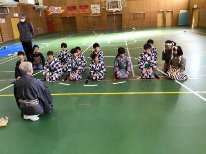 3・4年生「歌舞伎の練習をしています」 公開日 2025/11/27 更新日 2025/11/27 お知らせ 3・4年生は、12月の授業参観に向けて、歌舞伎の練習に取り組んでいます。小原歌舞伎保存会の方々が教えてくださり、セリフの言い回しや動きを学んでいます。緊張もありながら、新しいことへの挑戦にわくわくしている様子でした。小原の伝統を守っていくために、動きを一つ一つ確認し、それぞれの役になりきって演じられるように頑張っていきます。