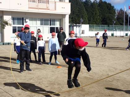 冷たい北風が吹く季節ですが、道慈っ子たちは元気いっぱいに運動場でなわとびをしています。