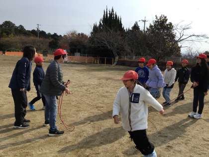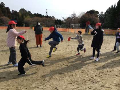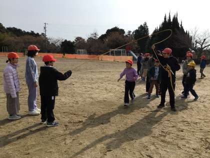 今週は2回目のなわとび強調週間です。月曜日から金曜日まで日替わりで、学年部の大縄(八の字とび)、縦割り班の大縄(八の字とび)、個人技の練習を行なっています。今日は、縦割り班の大縄の練習でした。低学年と高学年では跳ぶ速さなどが違うので難しいこともありますが、6年生が上手に回しているので、低学年も上手にとべるようになってきました。