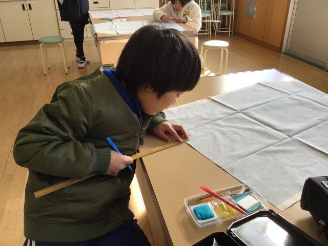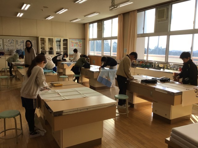 エプロン作りが始まりました 公開日 2026/02/05 更新日 2026/02/05 各学年から 家庭科の授業ではエプロン制作をしています。体の大きさに合わせて布を切ったりチャコペンで印を付けたりしました。一つ一つの作業に丁寧に取り組むことができました。完成が待ち遠しいです。