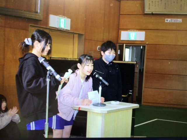 1年間、本校の教育活動にご協力いただいた地域の方、サポーターの方々をお招きして感謝の会をしました。来賓入場後、来賓紹介、交流タイム、プレゼントの贈呈、そして、校歌を歌った後、来賓を花道でお送りしました。大きな行事では今年最後の6年生の司会運営でした。さすが6年生、交流タイムでは進行の状況や下級生の様子を見ながら、上手に進めたりアドバイスしたりしていました。来賓も子どもたちも笑顔がたくさん見られた和やかな会になりました。