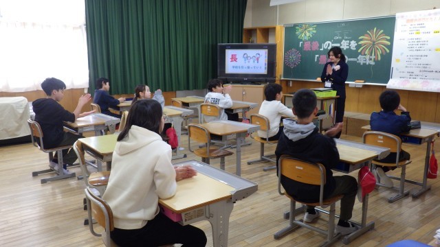 在校生は、気持ちを新たに進級したクラスに入り、担任の先生との学級開きを行いました。