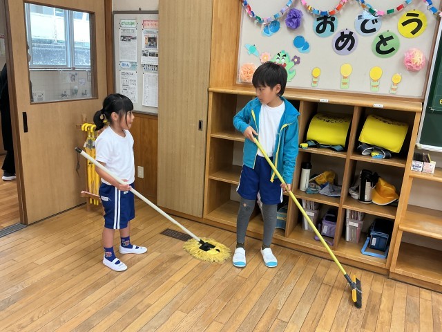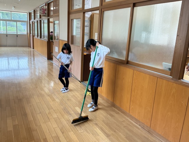 縦割り班(仮)掃除スタート 1 公開日 2026/04/15 更新日 2026/04/15 お知らせ 昨日までは、学年ごとの簡単清掃でしたが、今日から縦割り班掃除がスタートしました。(縦割り班はまだ仮です)5、6年生が1年生にやり方を優しく教えていました。1年生も頑張って掃除をしていました。 +2