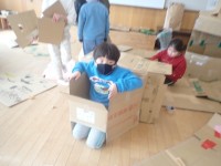 1・2年生:図工「ダンボールの中に入ったら」