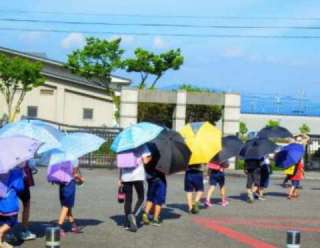 令和2年 5月 熱中症と新型コロナウイルス感染症対策として「傘さし登下校」を開始し、多数の取材を受け全国で報道される。