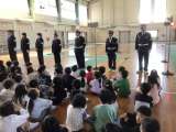 1年生のために、地域の交通指導員さんたちが交通安全教室を開いてくれました。代表の子が大きな挨拶をしてくれたので、みんなもとても上手に挨拶ができました。 横断歩道は、手を挙げて「右、左、右、車よし」と確...