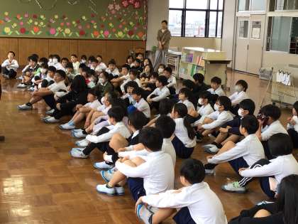 4年生は学年集会を行いました。2分前にはワークスペースに集合する姿を見て、4年生の意識の高さを感じました。学年主任から「1年後に高学年になるにあたって、今から心構えをしていくことが大切です」という話しがありました。
