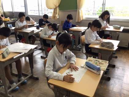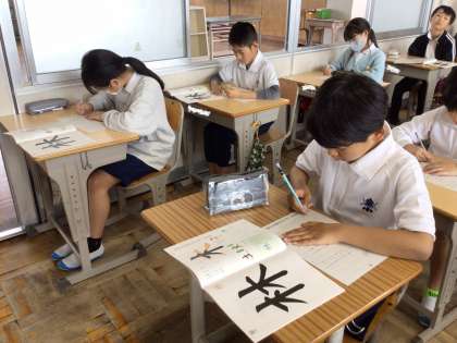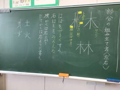 4年生になって初めての書写です。字を書くときの姿勢や、読みやすい文字を書くためのポイントを確認したあとに、「林」という字を書きました。細かいところまで気をつけて書くと、いつもよりずっと綺麗な文字が書けました。普段の生活の中でも、学んだことを生かしていけるとよいですね。