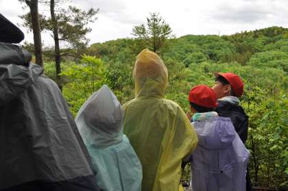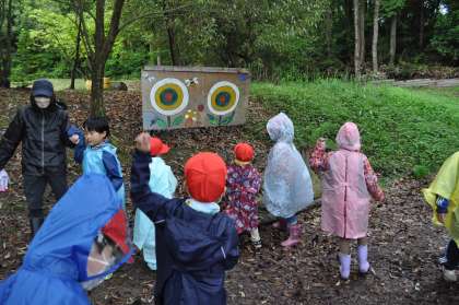 「五感で自然を感じよう」という職員の方のお話のあと、さっそく森へ探検に出かけました。