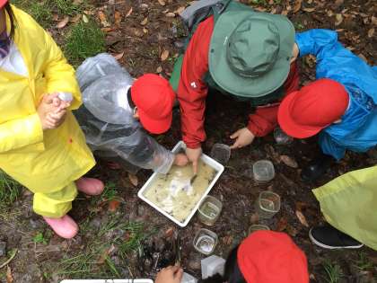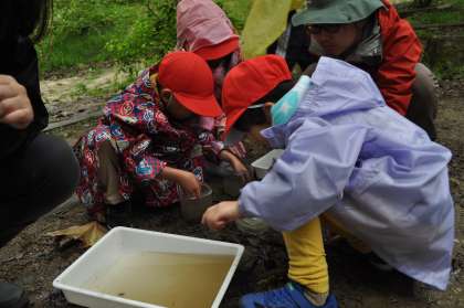 おたまじゃくしだけでなく、ヤゴを3種類も捕まえました。シオカラトンボ、オニヤンマ、イトトンボのヤゴは形が違っていて、目を皿のようにして観察していました。