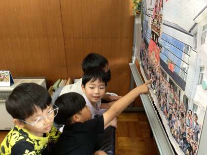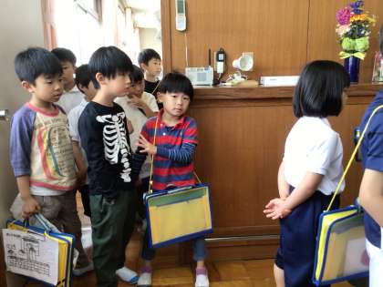 校長室では、「校長先生の名前は何?」というミッションがあり、「かよこ先生と言うんだよ」と2年生が優しく教えていました。飾られている挙母祭りの山車の写真を見たり、校長室のソファーの座りごごちを確かめたりと、普段はなかなか入る機会のない校長室の雰囲気を味わっていました。
