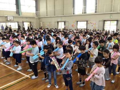 3年生は鍵盤ハーモニカで「こぐまの2月」演奏をしました。2年間練習をすると、こんなにすてきな演奏ができるのですね。すごいなという思いが1年生の表情から読み取れるようでした。