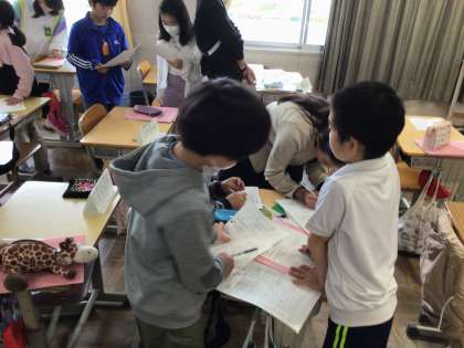 5年生は、外国語の授業で自分や友達のイニシャルについて学びました。「What are your initials ?」といった文章を用いて、友達のイニシャルを聞きました。英語の文章を話したり聞いたりすることを通して、イニシャルとは何かを知り、イニシャルの活用方法を学びました。「家でお母さんにも英語で聞いてみたい」「イニシャルっておもしろいね」などの感想が聞かれました。ぜひ、ご家庭でも話題にしてみてください。