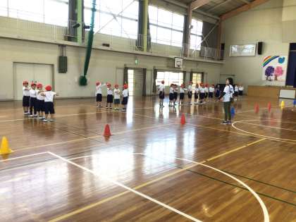 2年生は、体育の授業でボールを使って手でパスをする活動を行いました。最初は相手の胸に目掛けて、相手が取りやすいスピードで投げる練習を行いました。慣れてきたら、列ごとにコーン目掛けて投げる練習を行いました。「コーンは少し遠いところにあるから、当てるのが難しかった」「転がしたらコーンに当たってうれしかった」などの感想がありました。