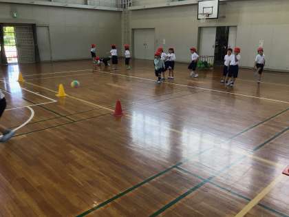 友達と協力しながらどうすれば上手にコーンに当てられるのかについて話し合って取り組むことができました。