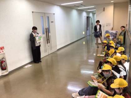 続いて司令室の見学をしました。司令室は撮影禁止のため、写真は反対側を向いて話を聞いている場面です。(実際には、司令室をじっくりと観察することができました)