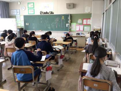 6年生は、国語科「心の動きを俳句で表そう」の学習で俳句作りに挑戦していました。短歌と俳句の違いである「季語」を学習用タブレットを使って調べ、自分の気持ちを表現する俳句を考えました。芸能人が簡単そうに俳句を作っているところをテレビで見たことがありますが、実際に自分で作ると難しく、みんな苦戦していました。作った俳句は教室に飾ります。授業参観で来校された際には、ぜひご覧ください。