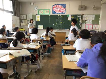 4年生の国語科「ヤドカリとイソギンチャク」の学習では、学習のまとめをしていました。この単元の最後の授業でしたが、先生の出る幕もないくらい、意見を言ったり、質問し合ったりしていました。対話をしていると、また新たな疑問が生まれ、議論が始まっていました。子どもの探究心は、すごいです。