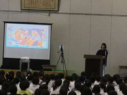 校長先生から、「笑顔の周りには笑顔が集まる。笑顔を支えられる人になりましょう」と、素敵な笑顔についての話がありました。また、13年間子どもたちが安全に登下校するのを見守っていただいた大友さんがお家の都合でお辞めになるので、感謝状をお渡ししました。長い間、子どもたちを見守っていただきありがとうございました。