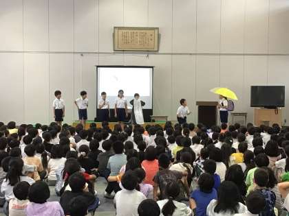 最後に、運営委員会から、傘さし登下校を安全に行うための諸注意について、寸劇を交えて話がありました。