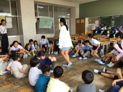 今日は縦割り活動がありました。毎回、6年生が縦割りグループでの遊びを考え、準備して、この日を迎えます。学習用タブレットを活用して作った「先生クイズ」、新聞紙乗りゲーム、全身を使ってみんなでポーズを考えてじゃんけんをする「体じゃんけん」など、6年生の子達のアイディアいっぱいの遊びに、みんなは大喜びでした。今年からは、体育館や運動場も使って、体を思いっきり動かす遊びも計画されました。残念ながら気温が高くなり、外遊びは中止になりましたが、わらべっこの笑顔あふれる時間になりました。