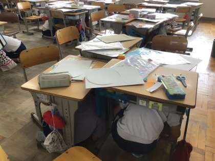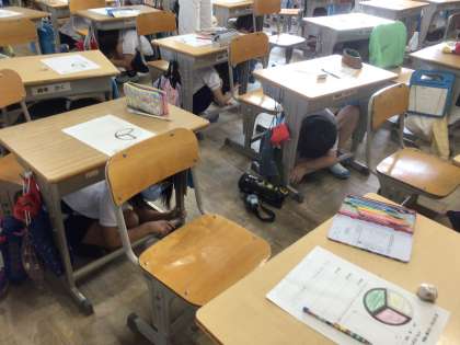 今日は、市内一斉に緊急地震速報の訓練があり、本校も訓練に参加しました。緊急地震速報を聞いてさっと机の下にもぐった子、校内放送をじっと待っていた子、反応はさまざまでしたが、どの子もどのように行動すればよいのかをよく考えていました。また、避難するまでを練習している学級もありました。
