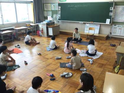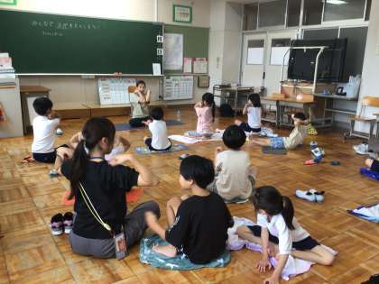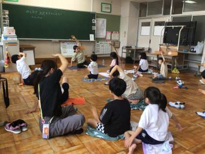 山あす1階は、自立活動の時間に、ヨガ講師をお招きしてヨガの体験を行いました。最初は緊張した様子でしたが、体験する中で、みんなの表情がだんだんと穏やかになっていきました。ヨガの一つ一つの動きに意味があるそうです。「初めてやったけど、楽しかった」「足の指をぐるぐるしたことがなかったけど、やってみたらとても気持ちよかった」と感想がありました。授業後には、「もっとやりたい」「次はいつ来てくれますか?」などの声が聞こえ、みんながヨガに夢中になったことがよくわかりました。