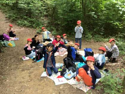 地図だけを頼りに山の中を探索するオリエンテーリングは難しいようです。豪華な夕食にするため、班の仲間と地図を見ながら相談していました。途中で、「みんな、水分補給して!」と声をかけ合って体調を気遣ったり、お家の方の愛のこもったお弁当食べたりして、ゴールを目指します。