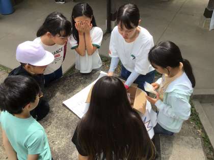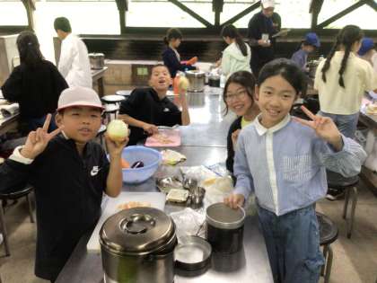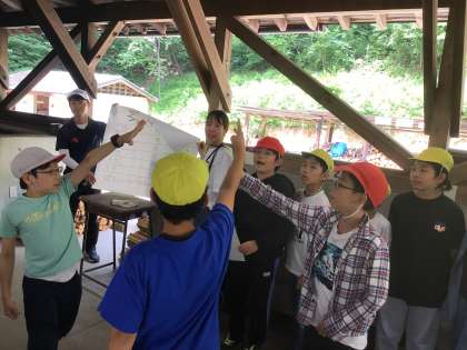 予定時刻より少し遅れましたが、全員元気にゴールできました。いよいよ結果発表。緊張の瞬間です。結果は・・・なんと、6位が3班あり、まさかのジャンケンで4位から6位が決定しました。ねらい通りの食材をゲットできた班はにっこり笑顔。今から、カレー作りに挑戦します。