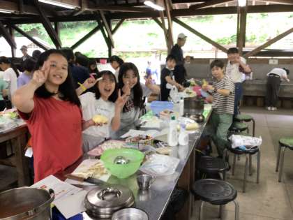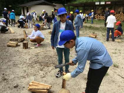 カレー作りは順調です。涙を流しながら玉ねぎを切る子、おっかなびっくり薪割りをする子、初めての経験も多いですが、みんなで協力して作るカレーは最高に美味しくなる予感がします。