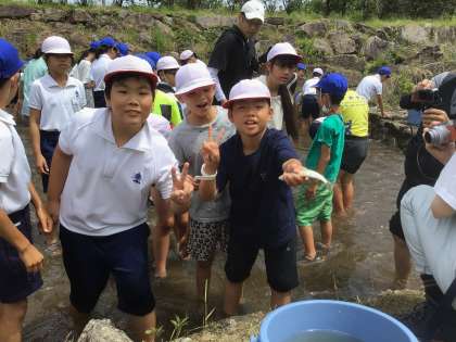 3組は、全員で魚を追い込む作戦を実行しました。