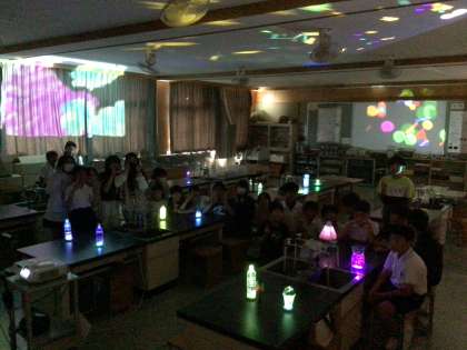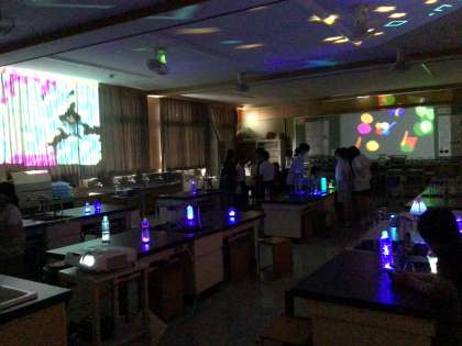 6年生は、図画工作科の授業で「映え部屋」をつくりました。子どもたちからホームページにアップしてほしいという話があり、今回この「映え部屋」をアップしました。学級で話し合ったことをもとに、机ごとに時間差でライトを点灯させてグラデーションをつくったり、プログラミングアプリでつくった動く模様を壁と天井の4面に投影したりして、みんなの考えが詰まった映え部屋をつくることができました。「インスタ映え」ならぬ「ホームページ映え」です。