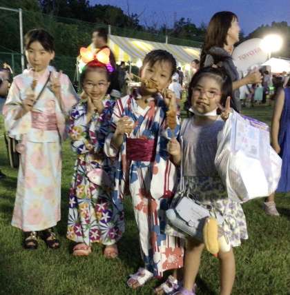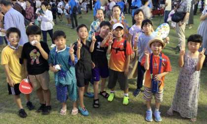 夏休み初日、毘森公園で「小坂自治区納涼夏祭り」行われ、地域の方が大勢参加されました。童子山小学校の子どもたちにもたくさん会えて嬉しかったです。