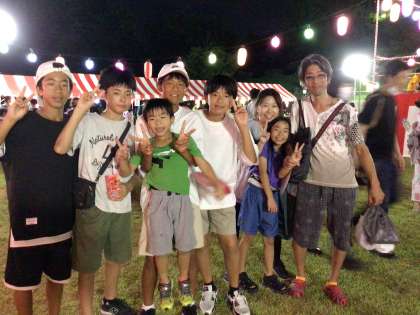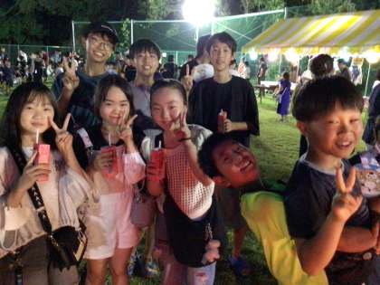 卒業生にもたくさん出会いました。カメラを向けると、みんな笑顔を見せてくれます。早速、楽しい夏休みの思い出ができました。