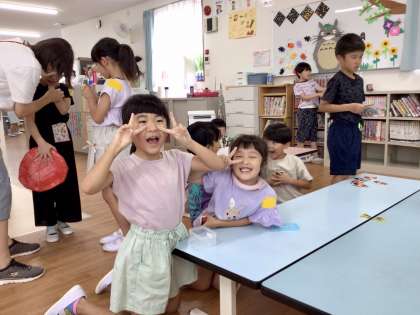 外は熱中症警戒アラートが出ていて、すごく暑い日が続いています。でも、わらべっこさんの中はみんな元気いっぱいでした。わらべっこさんのみんなの笑顔が見れて、パワーをもらいました。みなさん、よい夏休みをお過ごし下さい。