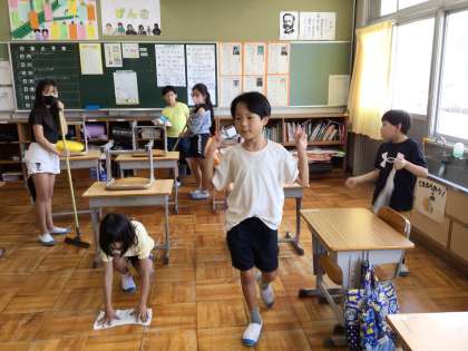 今日は久しぶりの清掃活動がありました。今日から清掃場所が変わったので、やり方がわからない子が多いかもしれないと心配しましたが、どの子も張り切って掃除をしてくれました。夏休みの間にほこりが溜まったところも、みんなの頑張りでピカピカになり、気持ち良い校舎になりました。