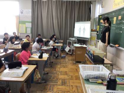 4年生が保健体育で思春期の体の変化について養護教諭の瀧埜先生と学習していました。